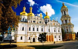 تا سال ۹۸۸ میلادی ساکنین اوکراین فعلی نیز به مانند بسیاری از مردم اروپا بت پرست بودند ولی با پذیرش آئین مسیحیت از سوی پرنس ولادیمیر این کشور نیز مسیحی شد. در سال ۱۰۵۴ به دنبال تکفیر متقابل پاپ روم و پاتریاک بیزانس مذهب ارتدوکس توسط پاتریاک بیزانس به وجود آمد و کشورهای زیادی از جمله اوکراین ارتدوکس گردیدند و به همین دلیل بیشتر مردم اوکراین تابع کلیسای ارتدوکس بوده و اقلیتی تابع کلیسای کاتولیک میباشند که بیشتر ساکن نواحی غرب اوکراین هستند. علاوه بر ارتدوکسها و کاتولیکها، پیروان مذهب پروتستان و برخی فرق مسیحی دیگر نیز در اوکراین وجود دارند. یهودیان هم دارای کنیسههای مختلف هستند (در کیف ۲ کنیسه) که مراسم مذهبی خود را انجام میدهند.